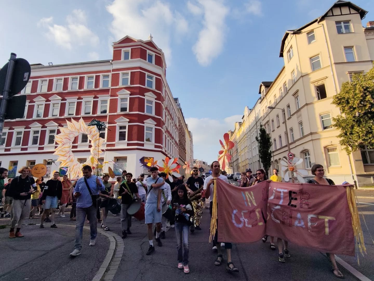 Ein besonderes Highlight war der Demozug "In guter Gesellschaft - Für die freie Kulturszene", der mit seiner bunten Ästhetik, den selbstgebauten Demo-Utensilien des Paper Lantern Collective und der starken musikalischen Beteiligung ein sehr positives und sichtbares Zeichen für die freie Kunst- und Kulturszene setzte.